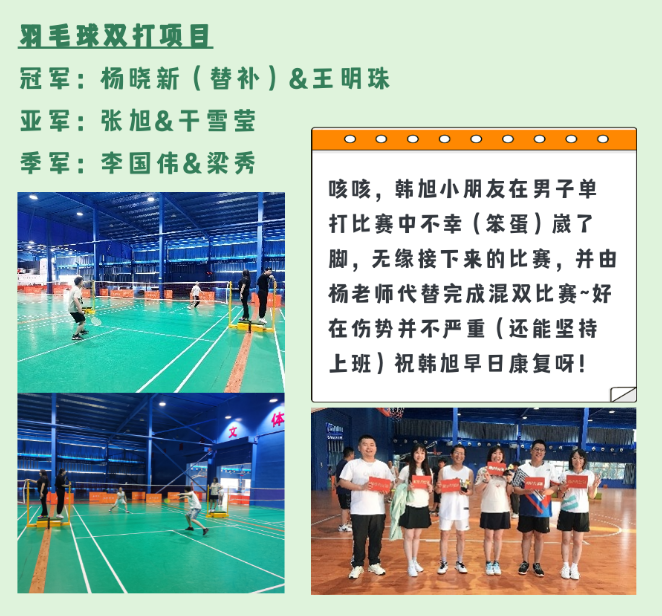相信通過這次運(yùn)動(dòng)會(huì),大家在合作和對(duì)抗中都對(duì)其他人有了新的認(rèn)知,在未來的工作和生活中,能夠更加融洽更加默契!